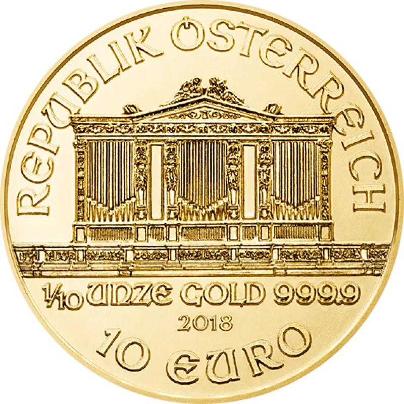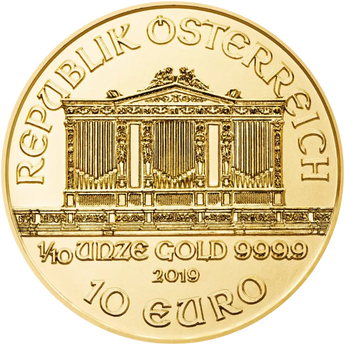 Die 1/10 Unze Wiener Philharmoniker Münze ist die mittelgoße Münze der fünf Familienmitglieder. Der Wiener Philharmoniker ist die erfolgreichste europäische Anlage-Goldmünze und laut World Gold Council in den Jahren 1992, 1995, 1996 und 2000 die am meisten verkaufte Goldmünze der Welt. Besonders begehrt ist die Münze in Japan und Noramerika.