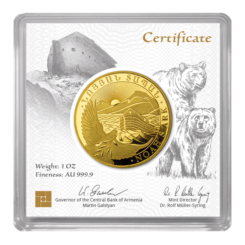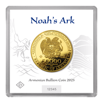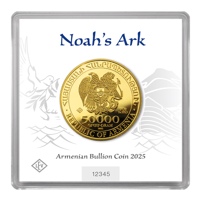 Erstmals erschien die Arche Noah Goldmünze als Anlagemünze in Stempelglanz im September 2020. Diese schöne und exklusive Münze wird in Deutschland für das Land Armenien produziert. Beim Kauf erhalten Sie die Goldmünzen in einer Sicherheitskapsel und mit Echtheitszertifikat. In 2017 wurde die streng limitierte PP- bzw. Proof–Variante herausgegeben.