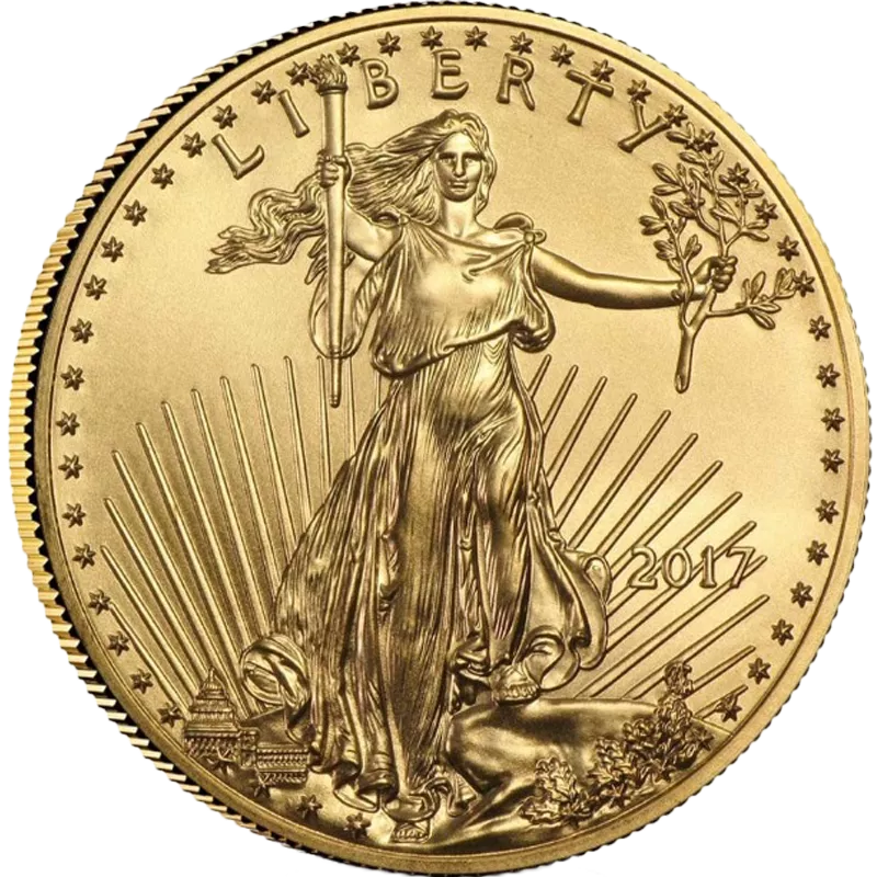 Die Vorderseite zeigt nach einem Entwurf von Augustus Saint-Gaudens die Freiheitsgöttin „Lady Liberty“ mit einer Fackel in ihrer rechten Hand. In der linken hält sie einen Olivenzweig.Die Jahreszahlen der Gold Eagles der Prägejahre bis 1991 sind mit Römischen Zahlen angegeben. Ab 1992 wurde die Jahreszahl in arabischen Zahlen aufgeprägt. Oberhalb des Motivs steht LIBERTY und rund um die Münze entlang des Randes befinden sich kleine Sternchen.