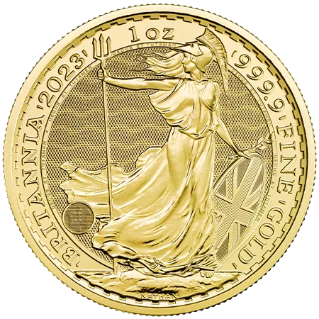 Die Motivseite zeigt jährlich das Bild der britischen Nationalfigur Britannia mit korinthischem Helm und Gewand. In der rechten Hand der kriegerischen Frauengestalt in Rüstung sehen wir einen Dreizack, mit dem sie über die Meere herrscht. In ihrer linken Hand hält sie ein Schild mit Großbritanniens Flagge – der Union Jack – und einen kleinen Ölzweig. Die Britannia steht für Weisheit und eine staatliche Gemeinschaft und ist die weibliche Verkörperung der Britischen Inseln. Das Design stammt von Philip Nathan, der das Motiv im Jahre 1987 entworfen hat. Sein Nachname ist in Großbuchstaben unterhalb der Britannia geprägt. In der Randinschrift sehen wir den Namen „BRITANNIA“, das Prägejahr „2023“ sowie Feingewicht und Feingehalt „1oz 999.9 FINE GOLD".