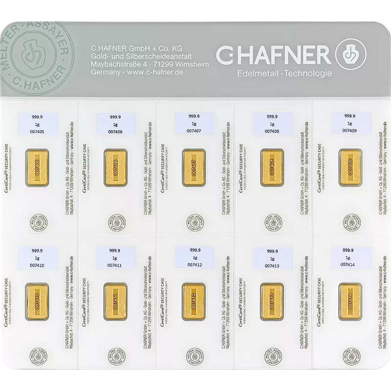 10 x 1 g Goldbarren C.Hafner Smartpack FAQ