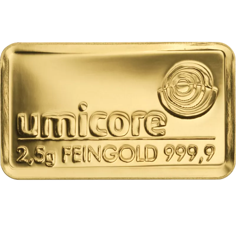 Starten Sie noch heute Ihre Goldinvestition mit unseren hochwertigen 2,5-Gramm-Goldbarren und profitieren Sie von der Stabilität und Wertbeständigkeit des Edelmetalls!