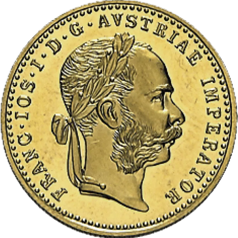 Auf der Vorderseite der 1 Dukat Goldmünzen aus Österreich ist das Portrait des Kaisers Franz Joseph 1. von Österreich (1830 – 1916) mit einem Lorbeerkranz auf seinem Haupt abgebildet. 1872 wurde dieses Motiv des österreichischen Kaisers erstmals für die Prägung der Golddukaten gewählt und wird heute noch für die Nachprägungen verwendet. Die Umschrift am Münzrand der 1 Dukaten Goldmünze lautet: FRANC IOS I D G AVSTRIAE IMPERATOR, dies bedeutet: Franz Joseph 1. durch Gottes Gnaden Kaiser der Österreicher.