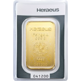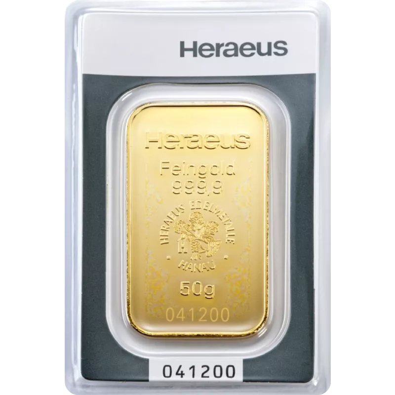 Heraeus Goldbarren sind in den Größen 1g, 5g, 10g, 20g, 1oz., 50g und 100g geprägt im Blister mit Zertifikat sowie in den Größen 100g, 250g, 500g und 1kg gegossen eingeschweißt mit Zertifikat bei Gold Silber Markt handelbar.