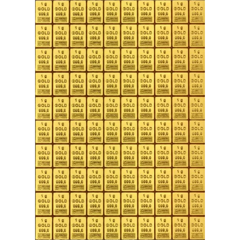 CombiBars sind Tafelbarren die aus einem Goldbarrenverbund von 100 x 1g Feingoldbarren bestehen.