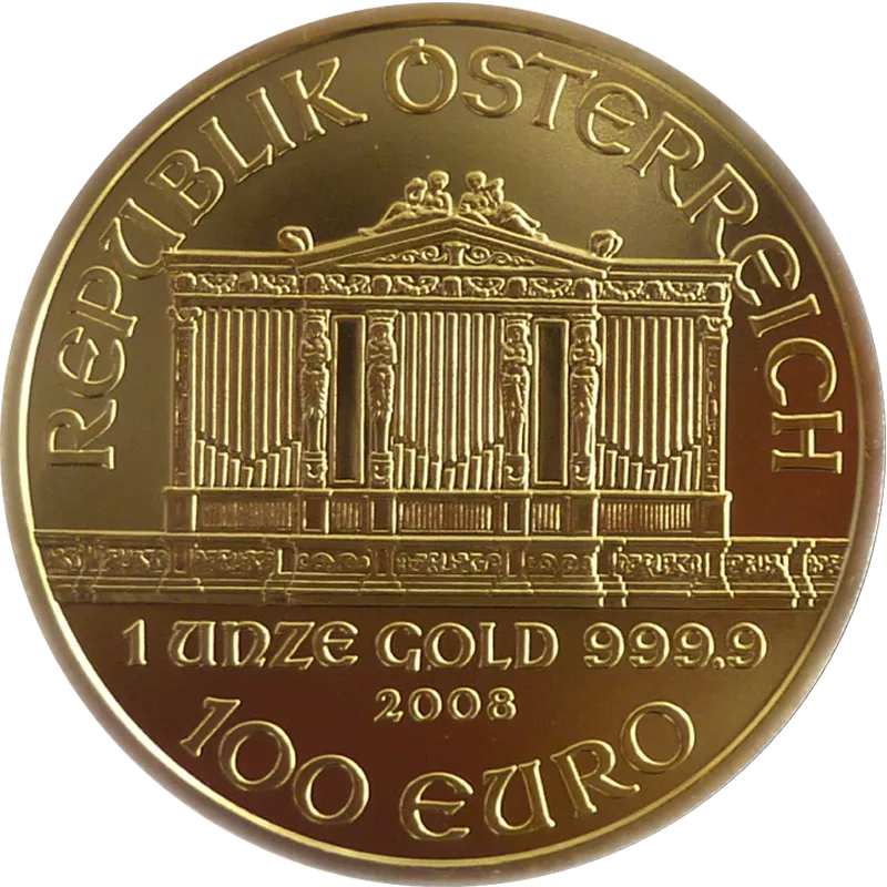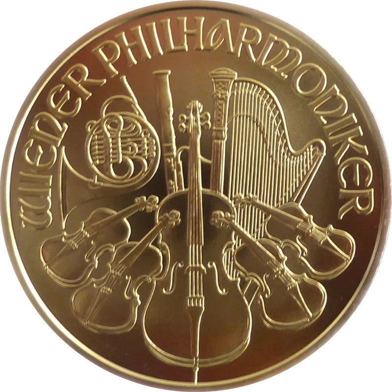 Am 10. Oktober 1989 wurden die ersten Wiener Philharmoniker im Handel angeboten. Die Münze Österreich AG in Wien produziert je nach Bedarf. Die Auflagenzahlen schwanken über die Jahre zwischen 500.000 und 1.000.000 Stück pro Jahr. Die 1 Unze Gold Wiener Philharmoniker Münze ist offizielles Zahlungsmittel mit einem Nennwert von 100 €. Wie alle Philharmoniker hat sie den höchstmöglichen Feingehalt von 999,9, d.h. aus reinem Gold. Basis für die Preisberechnung der 1 oz Wiener Philharmoniker Goldmünze als Anlagemünze ist der aktuelle Goldpreis.
