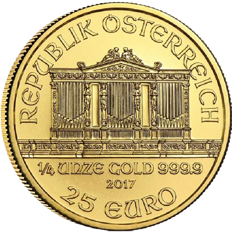 Die 1/4 Unze Wiener Philharmoniker Münze ist die mittelgroße Münze der fünf Familienmitglieder. Der Wiener Philharmoniker ist die erfolgreichste europäische Anlage-Goldmünze und laut World Gold Council in den Jahren 1992, 1995, 1996 und 2000 die am meisten verkaufte Goldmünze der Welt. Besonders begehrt ist die Münze in Japan und Nordamerika.