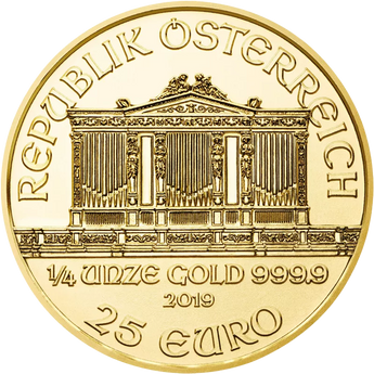 Am 10. Oktober 1989 wurden die ersten Wiener Philharmoniker im Handel angeboten. Die Münze Österreich AG in Wien produziert je nach Bedarf. Die Auflagenzahlen für die 1/4 Unze Münze schwanken über die Jahre zwischen 60.000 und 200.000 Stück pro Jahr. Die 1/4 Unze Gold Wiener Philharmoniker Münze ist offizielles Zahlungsmittel mit einem Nennwert von 25 €. Wie alle anderen Philharmoniker hat sie den höchstmöglichen Feingehalt von 999,9, d.h. aus reinem Gold. Basis für die Preisberechnung der 1/4oz Wiener Philharmoniker Goldmünze als Anlagemünze ist der aktuelle Goldpreis.