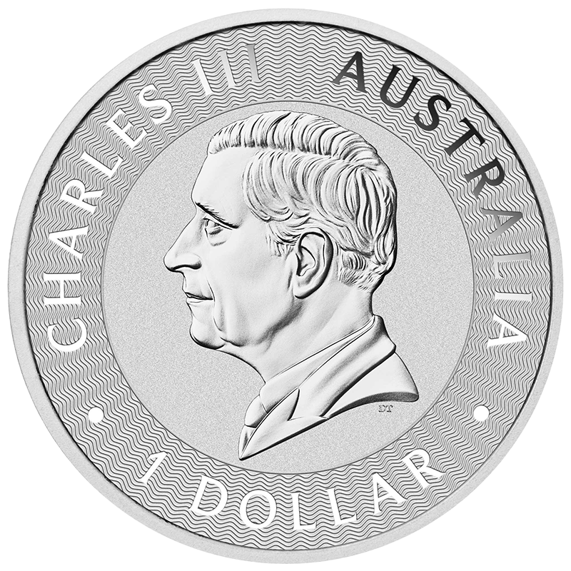 Designer: Känguru-Motiv aus dem Designteam der Perth Mint; Porträt von König Charles III. nach offizieller königlicher Vorlage.
